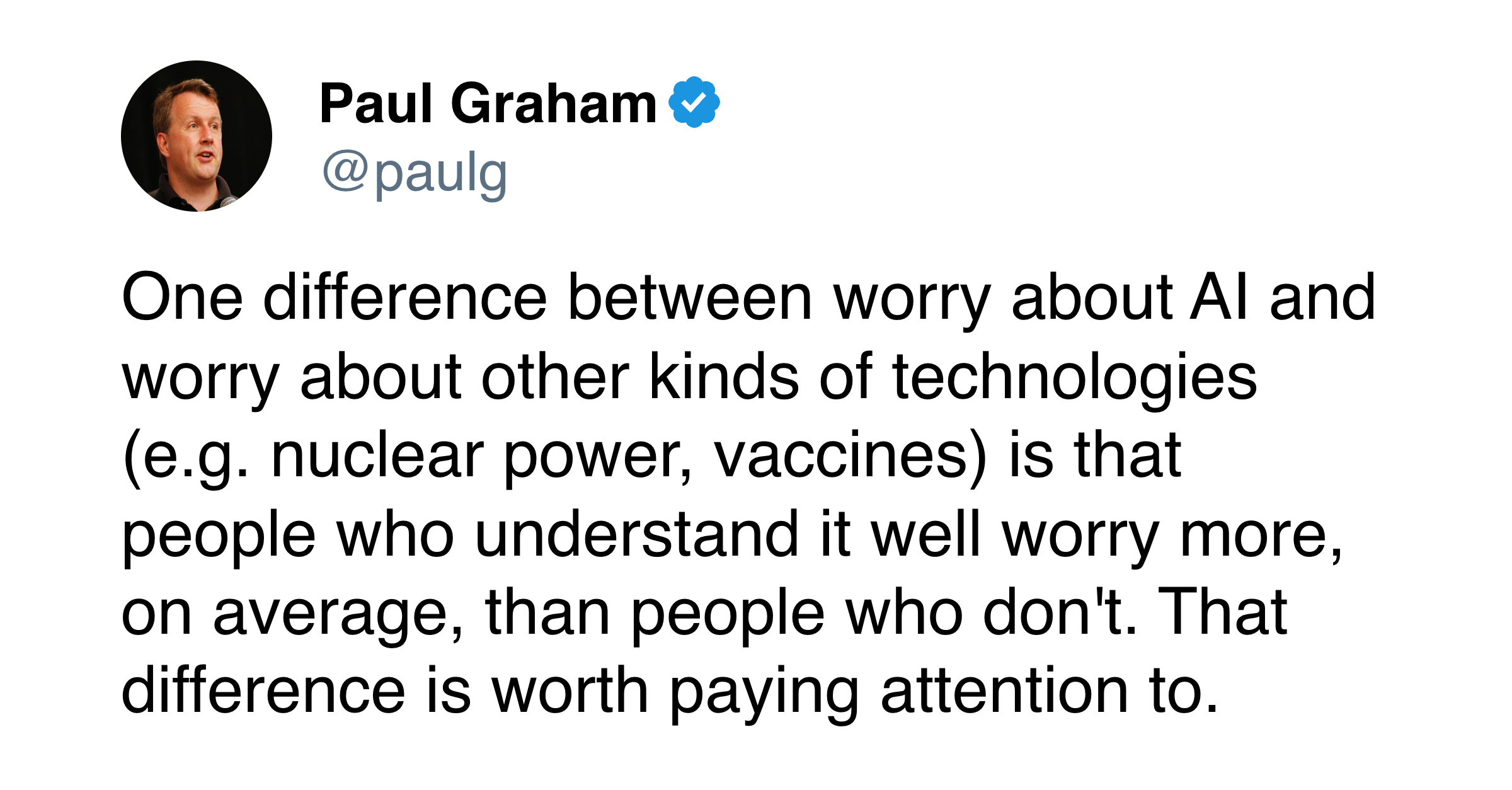 I think abortion is wrong, but grey, which is why I’m pro-choice. My problem with anti-abortion zealots was always I never really believed them. Or, I only believed the people planting pipe bombs at abortion clinics — yes, those guys definitely thought abortion was infanticide. But the rest of the “abortion is murder” people? If there was a factory down the block killing newborn babies, why weren’t you planting pipe bombs too? Here, as with global warming doomers buying waterfront property in Martha’s Vineyard, revealed preferences denote the average person, including the average “expert” doomer, is incurably moderate. This doesn’t mean they’re right, my point is just it’s curious so many ostensibly “rational” people say things they clearly don’t believe, and this fact alone calls most of their prescription into question. Given Eliezer’s revealed preferences (podcasts generally), I don’t at all suspect he plans to arm himself, and try to ‘do something’ about the engineers down the block. Unfortunately, there are no shortage of crazy people in this world looking for a reason to do really crazy shit.